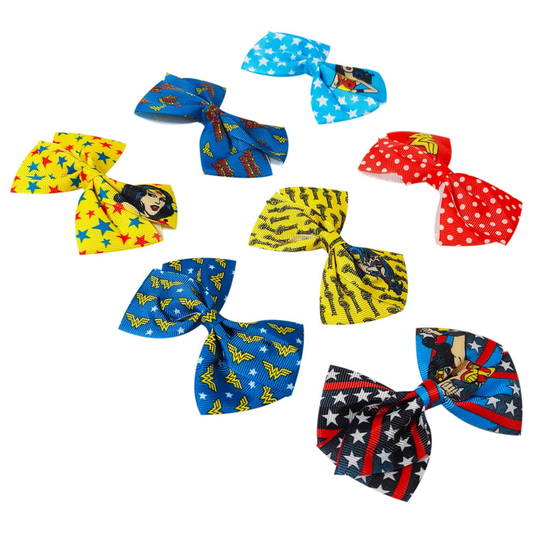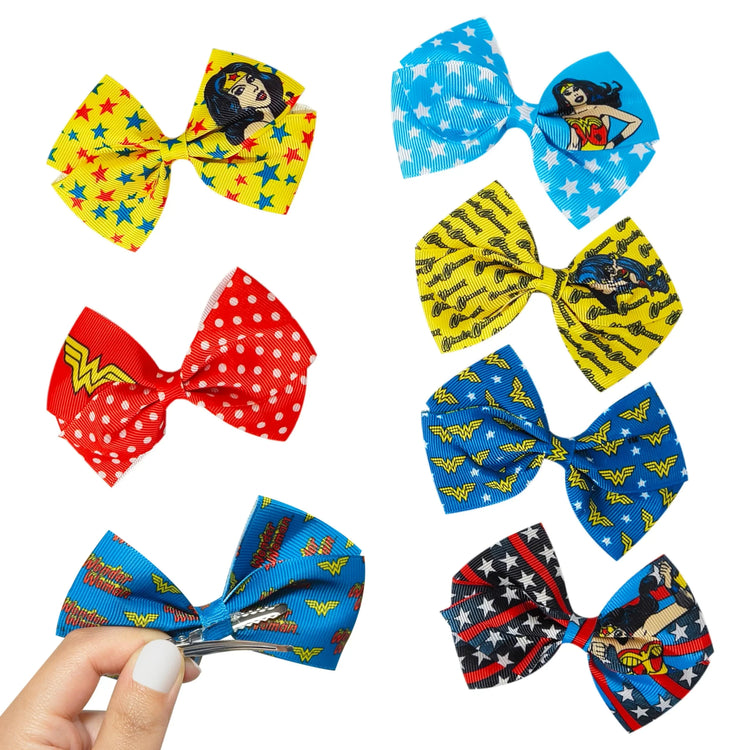 Wonder Women Printed Girls' Hair Bows – 7-Pack 4-Inch Hair...